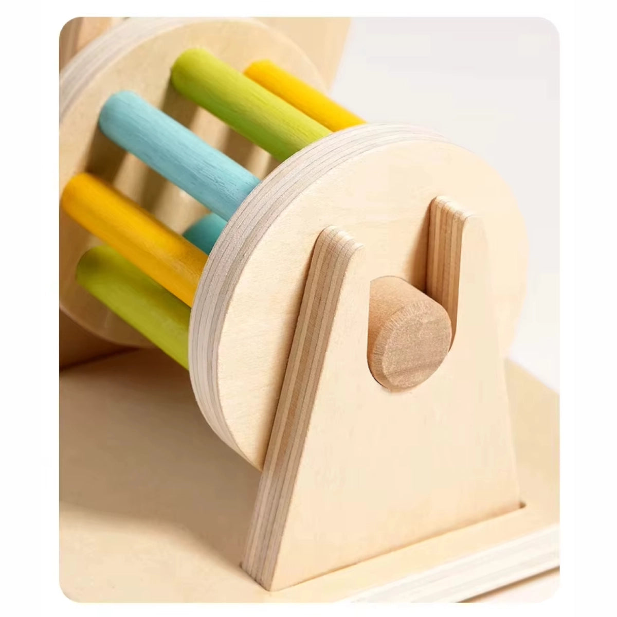 Montessori glazbena edukativna igračka - Drveni bubanj i šuškavi valjak u jednom proizvodu, stvoren je za istraživanje kroz igru: beba ga može okretati, tresti i nježno lupkati, a svaki pokret pretvara se u zvuk. Jednostavan je, zanimljiv i taman “po mjeri” malih ručica - idealan za prve susrete s ritmom i glazbom, bez ekrana i bez kompliciranih pravila.
